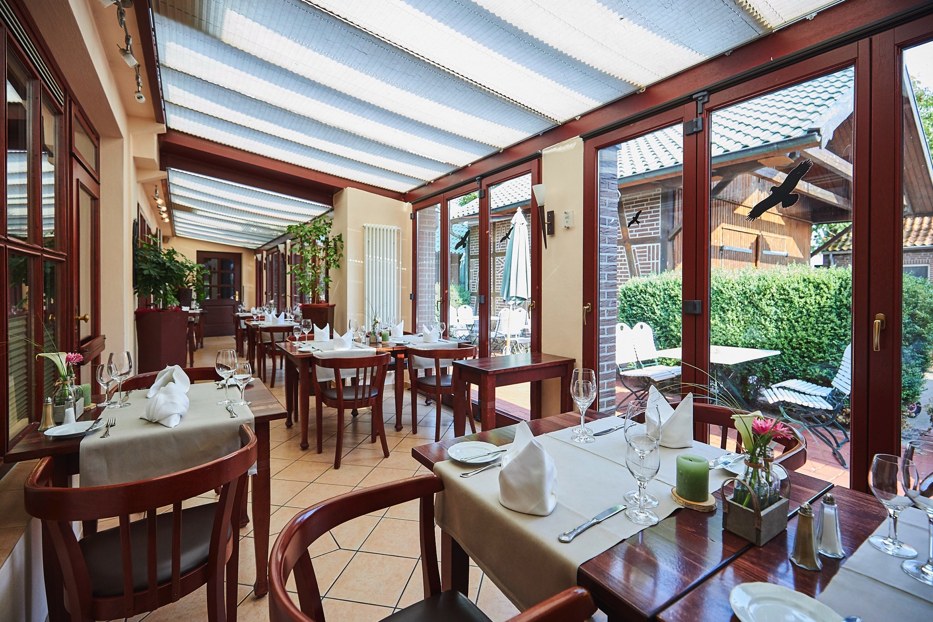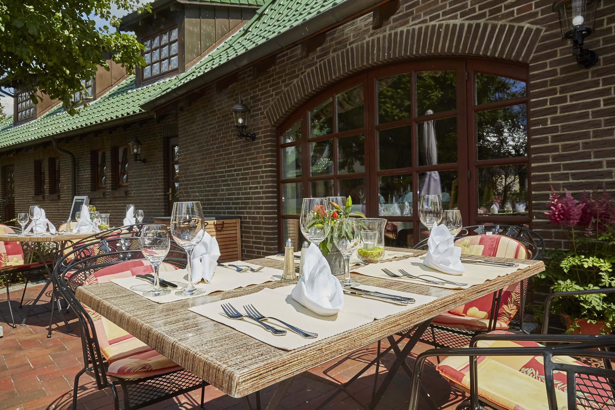 In unserer Küche werden vorrangig frische Produkte, gerne aus der Region, verarbeitet. Wir kochen mit Hand und Herz und haben uns der frischen deutschen Küche verschrieben. Natürlich gibt es auch Holsteiner Spezialitäten wie Sauerfleisch mit deftigen Bratkartoffeln und Matjes. Auch Vegetarier, Veganer und Allergiker kommen in unserem Restaurant voll auf ihre Kosten – wir gehen gerne auf individuelle Wünsche ein. Je nach Jahreszeit ergänzen wir unsere Speisekarte um saisonale Gerichte – von Spargel im Frühling über frischen Fisch und leichte Sommergerichte bis hin zu Wild und Grünkohl im Herbst und Winter. Ob am kuscheligen Kamin, im lichtdurchfluteten Wintergarten oder auf der sonnigen Terrasse – bei uns finden Sie immer das passende Plätzchen zum Genießen.