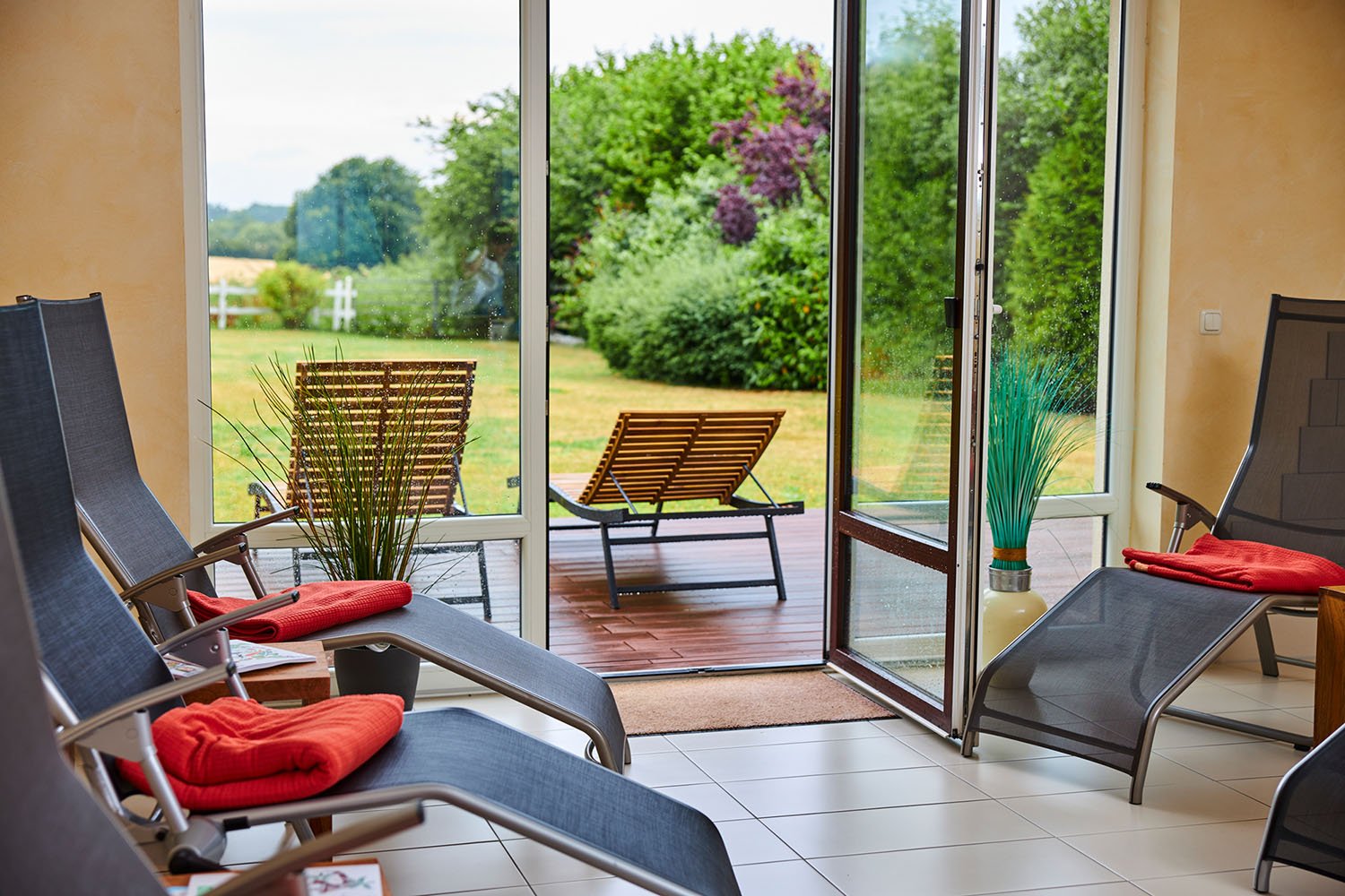 Das Flair Hotel Neeth überrascht mit einem kleinen, aber feinen Saunabereich. Entspannen Sie nach Ihrem aktiven Tag in der Sauna und anschließend im wunderbaren Ruhe- und Außenbereich.