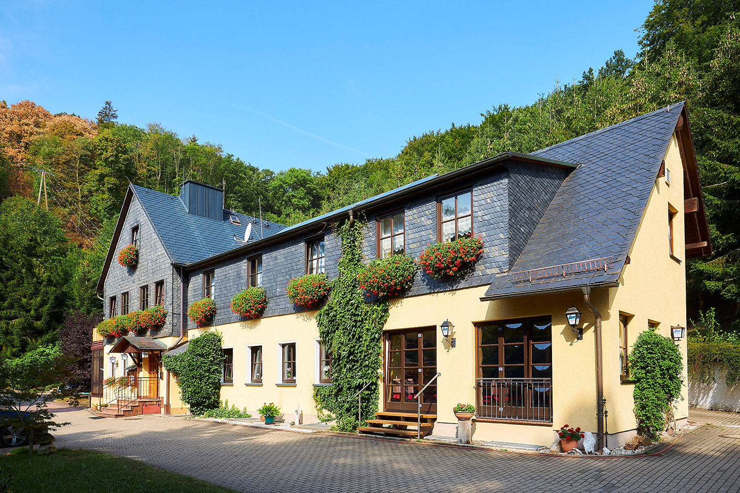 Herzlich willkommen bei Familie Pröschold im Flair Waldhotel Mellestollen. Herrliche, ursprüngliche Natur soweit das Auge reicht. Zahlreiche Wanderwege umgeben das Hotel, sodass man nicht nur den nahegelegenen Mellestollen und den Hopfgartenstollen bei einer Führung durch das Besucherbergwerk erkunden kann. Wie wäre es, einen warmen Sommerabend gesellig in unserem Biergarten, auf der Terrasse oder in unserer Grillhütte -mitten im Wald zu verbringen? Oder an kalten Wintertagen vor unserem Kamin ein Glas Rotwein zu trinken, den Sie in unserem Weinkeller verkosten konnten?