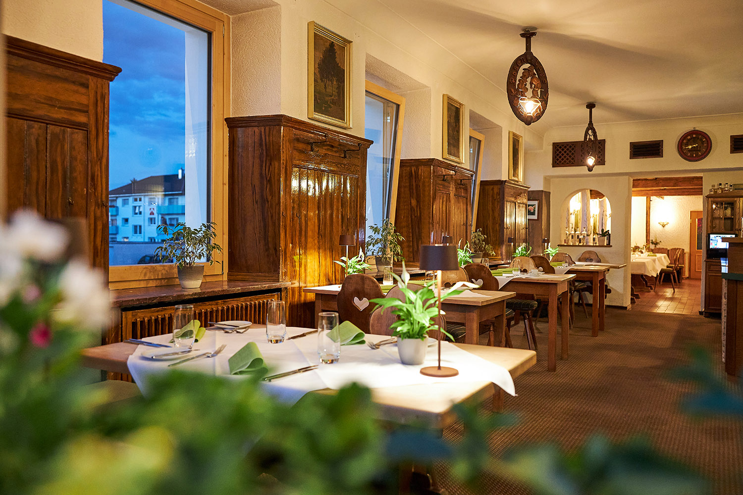 Sie suchen ein Hotel in Donaueschingen mit hervorragender, regionaler Küche? Dann sind Sie hier genau richtig. Im gemütlichen Restaurant gibt es noch eine altertümliche Stube, hier findet auch der Stammtisch des Ortes statt. In behaglicher Atmosphäre werden traumhafte Kreationen serviert. Die Küche verwöhnt Sie mit regionalen und saisonalen Spezialitäten, frisch und kreativ zubereitet. Der Service ist aufmerksam und herzlich und die Speisen werden begleitet von gepflegten Weinen und natürlich dem berühmten Fürstenberg Bier. Das Essen ist einfach sensationell, also am besten gleich bei der Buchung mit angeben, dass Sie einen Tisch reservieren möchten.
