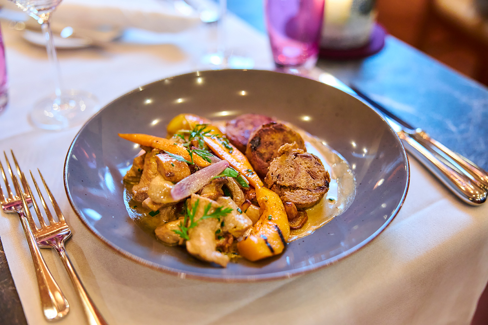 „Wer wirtschaftlich arbeiten will, der handelt automatisch nachhaltig, sonst macht er etwas falsch“ sagt Juniorchef und gastronomischer Leiter des Hauses, Alexander Erck. Wir leben hier auf dem Land und die Erhaltung unserer wunderschönen Gegend liegt uns extrem am Herzen. Deshalb versuchen wir so ressourcenschonend wie möglich zu arbeiten und stellen viel selbst her – beispielsweise haben wir eigene Bienen. Bei allem, was wir einkaufen versuchen wir, es möglichst aus der Region zu bekommen. So auch unser hervorragendes Rindfleisch, welches von Weiderindern aus der Region kommt.