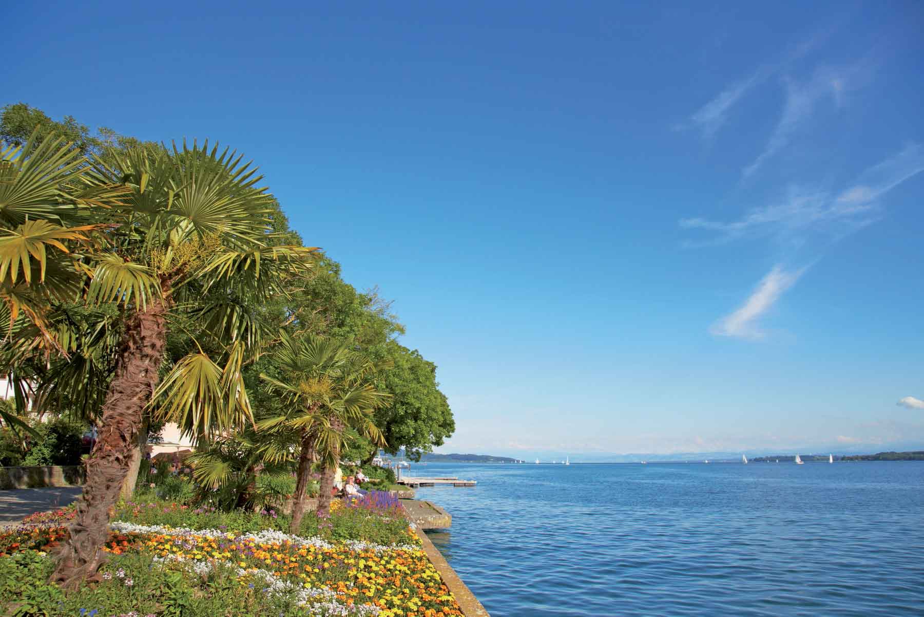 Der Bodensee in der Vierländerregion steht für unverfälschtes Lebensgefühl. Das faszinierende Alpenpanorama im Hintergrund bietet eine herrliche Kulisse für Unternehmungen aller Art. Spaß beim Baden, aktiv beim Wassersport oder eine entspannte Schifffahrt über das weite Blau des Bodensees. Rad- oder Wanderwege am Ufer entlang animieren zu erfüllenden Tagesausflügen. Die UNESCO-Weltkulturerbestätten wie die Klosterinsel Reichenau oder die prähistorischen Pfahlbauten führen auf die Spuren der Keimzellen der europäischen Zivilisation. Auf den Terrassen an den idyllischen Hafenanlagen von Lindau oder Meersburg schmecken die regionalen kulinarischen Köstlichkeiten besonders delikat und die genießende Besucher fühlt sich an südländische Lebensart erinnert. La dolce vita!